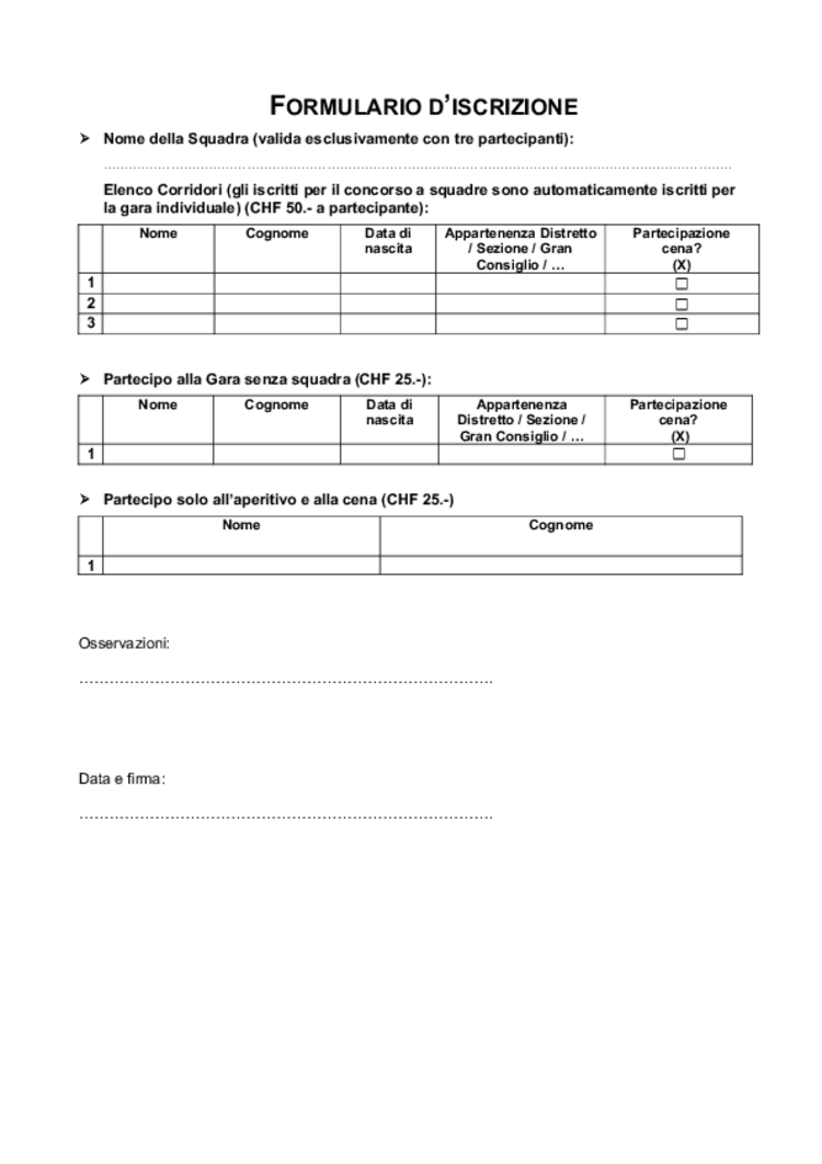 Possibilità: solo gara CHF 25.– / solo aperitivo + cena CHF 25.–.