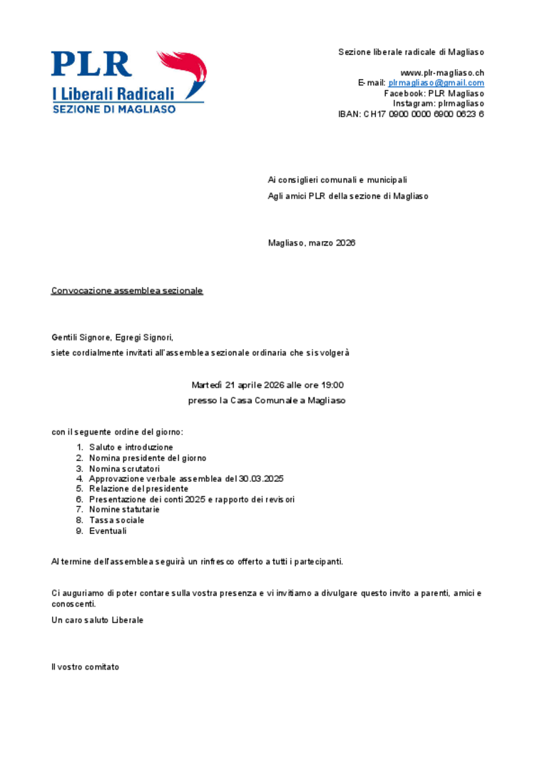 PLR Magliaso - Assemblea ordinaria